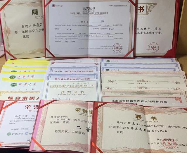 除此之外,专业课教师林洋也是陈志会学习路上的一盏明灯。刚进入大学时,陈志会对论文写作无从下手,所以她在很长一段时间内一直处于担心的状态。她害怕自己找错资料,找错方向,也怕想不出合理的大纲。好在林洋老师了解到她的困难后, 不厌其烦地给她讲解阅读文献、检索案例、大纲写作的要领,帮助她慢慢摸索出撰写论文的方法。“令我印象比较深的是有一次参加版权征文比赛,仅是因为文章题目的修改,林洋老师就给我打了十来次电话,反反复复和我讨论,我很感激他。”陈志会说。