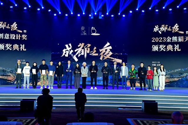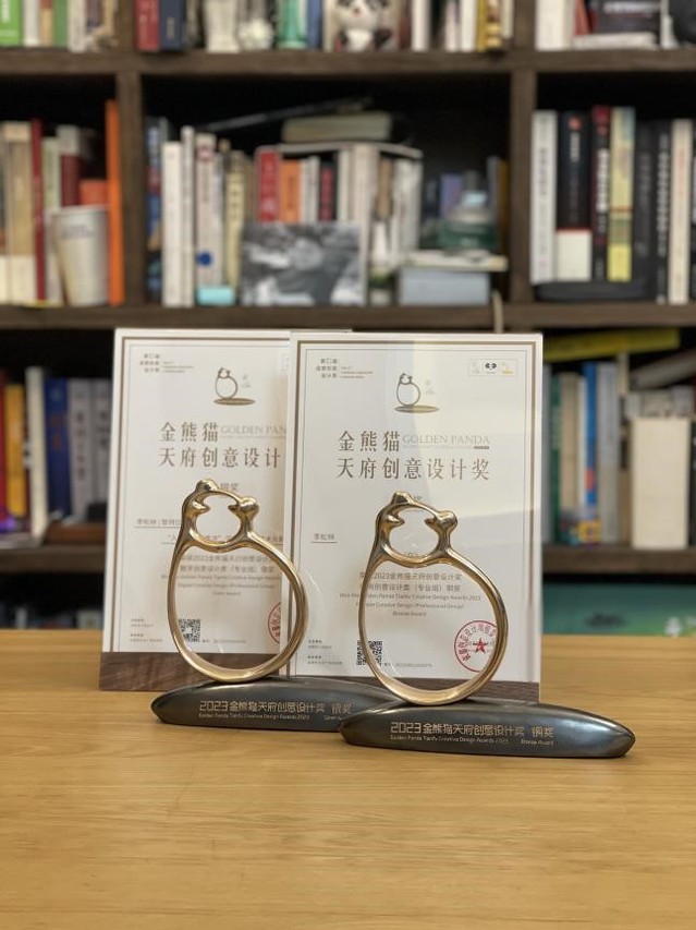 11月9日晚,由成都市人民政府主办、成都市文化广电旅游局承办的“2023文创之夜暨2023金熊猫天府创意设计奖颁奖典礼”在成都举行。来自国际知名设计大奖的评委、行业知名设计家、国内各大设计院校与创意设计机构专家学者出席颁奖典礼并颁奖。我校美术与设计学院教师黎珂位、李松林、魏豪彤、石靖、胡磊、卢杉、谢玉瑶、陈远蓉、陈渤林师生创作团队的作品《“入蜀方知画意浓”沉浸式数字艺术光影秀》获得金熊猫天府创意设计银奖,李松林老师的作品《你》获得金熊猫天府创意设计铜奖。