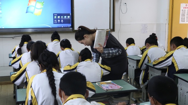 90后也有自己独特的教学方式。每次上完课,顾文迪都选择用学英语歌的方式来巩固上节课学过的语法。孩子们的歌声乘着风儿,飘荡在校园上空,这让其他班级的学生羡慕不已,也拉着她要学英语歌。晚自习时间长,有时班里的学生到了晚上坐不住,她就提前半小时讲课,后面或是唱歌,或是放美剧。“最近给班上同学分享了《初来乍到》这部美剧,主人公也是初中生,很能引起共鸣。”顾文迪说。