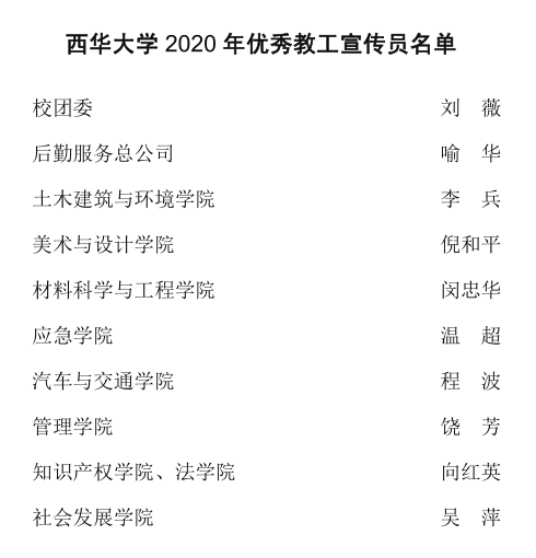会上对校团委刘薇等10名2020年优秀教工宣传员、党政办公室等10个网站建设先进单位,以及bv伟德国际体育官方网站外国语学院等10个新媒体联盟十佳平台进行了表彰。优秀教工宣传员代表、汽车与交通学院程波,网站建设先进单位代表、党政办王希,新媒体联盟十佳平台代表、外国语学院罗雨虹等3位老师分别从学院一线教学科研工作宣传、部门网站建设、学院新媒体平台运营等方面作了分享。