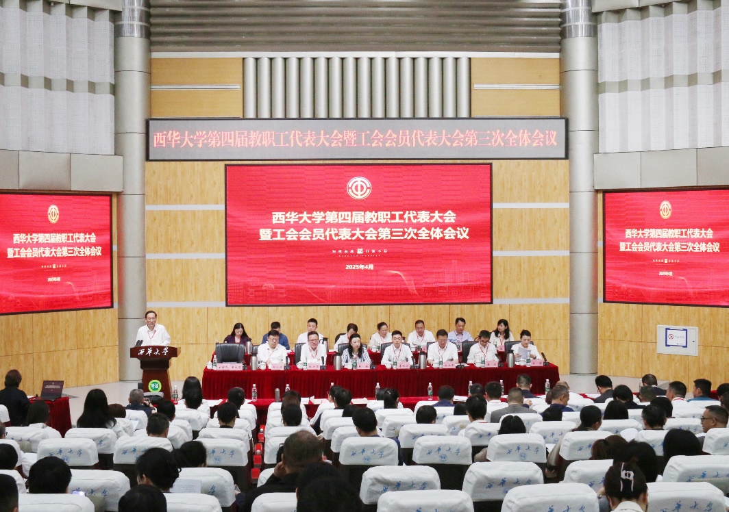 凝聚智慧力量,共绘发展蓝图。4月24日-25日,bv伟德国际体育官方网站第四届教职工代表大会暨工会会员代表大会第三次全体会议在郫都校区四教报告厅召开。校领导班子成员、“两代会”正式代表、列席代表、特邀代表近200人参加大会。