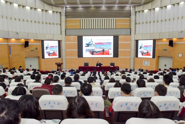 10月16日上午,我国著名舰船工程专家、中国工程院院士、中国第一艘航母“辽宁舰”的总设计师朱英富以“增强海洋意识,建设海洋强国”为主题,为西华学子带来一场精彩的讲座。朱院士从国际海洋形势、海洋战略谈起,回顾了中国舰艇发展的历史,详细而全面地为学子们讲述了航空母舰的诞生,带领同学们走近航空母舰这一“蓝色大海的传说”。
