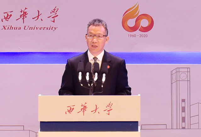 校长刘树根对学校60年来的发展成就进行了回顾和总结。他表示,学校60年来坚定办学方向,人才培养成效显著;聚焦产业发展,科学研究特色鲜明;扎根区域经济,服务能力不断提升;立足巴蜀大地,文化传承生生不息;坚持开放办学,合作交流步伐坚实。站在60周年的历史节点上,学校既感受到发展壮大的脉搏,也清醒地认识到未来面临的困难与挑战。他表示,学校将把顶层设计与问计于民有机统一,科学制定学校“十四五”和中长期发展规划,描绘好西华高质量发展的美好蓝图;将进一步巩固人才培养的中心地位,加快建设高水平本科,大力推进研究生教育改革,全面提高人才培养质量,为社会输送更多更优秀的人才;将更加突出学术的崇高和学者的荣誉,大力实施人才强校战略,瞄准科技前沿和关键领域,努力聚集创新发展新动力,为经济社会发展做出更大的贡献,向着国内知名的省属重点综合性大学迈进。