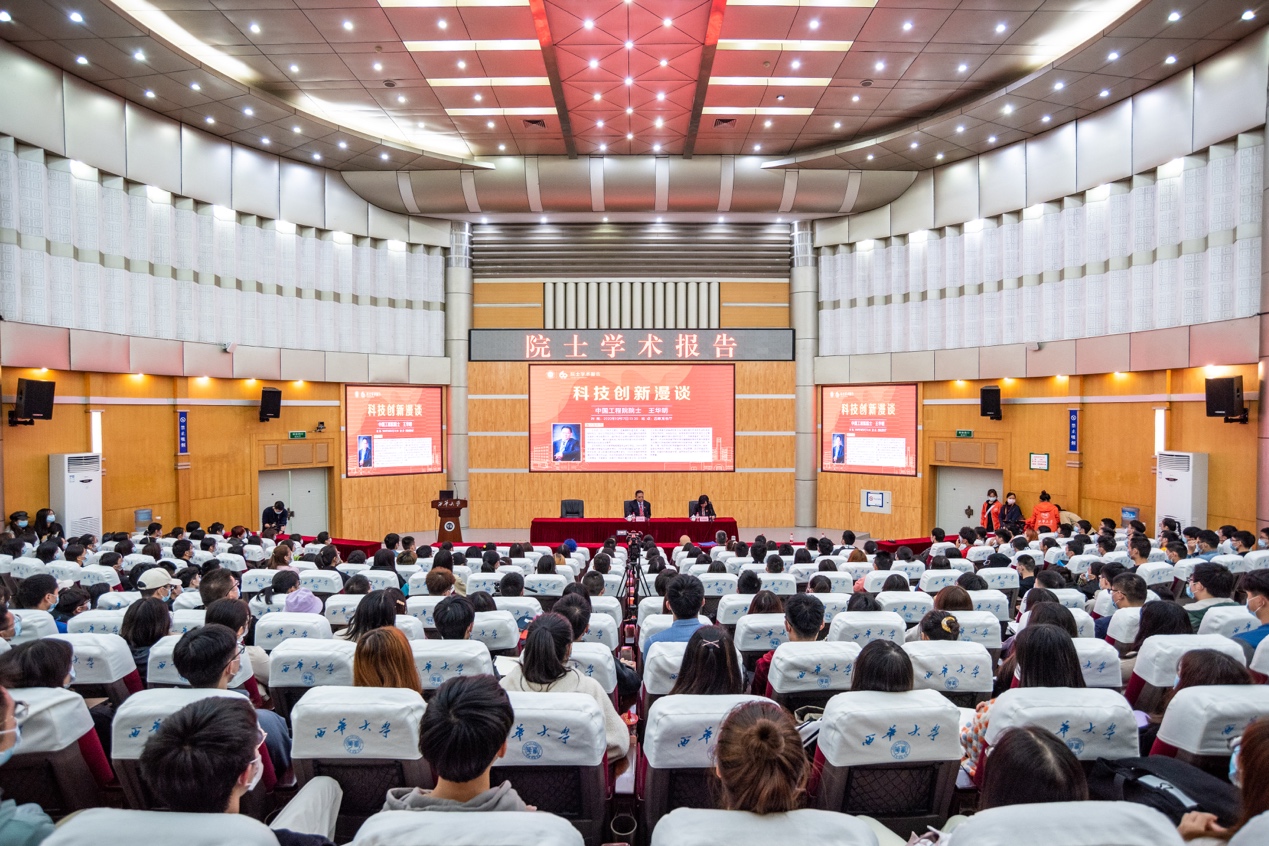 “后来,作为一名园丁,我培养了人才,我的内心感到充实且满足。”王华明还对西华学子讲述了他担任一名教师的收获:成为教师后,他努力学习教书技能,加深了专业基础知识的同时,得到了更多思考,也让他养成了尽职敬业、认真做事的习惯,懂得了言传身教、做人做事的道理。“作为老师,面对不断进步的学生们,更要加强自己的能力。要倒出一杯水,你至少得拥有两杯水。”王华明表示,教学能推动科研,老师在教授学生知识时也会得到收获,他就是从本科生教学内容中受启发,经过进一步探索,最终形成了自己的特色研究方向。