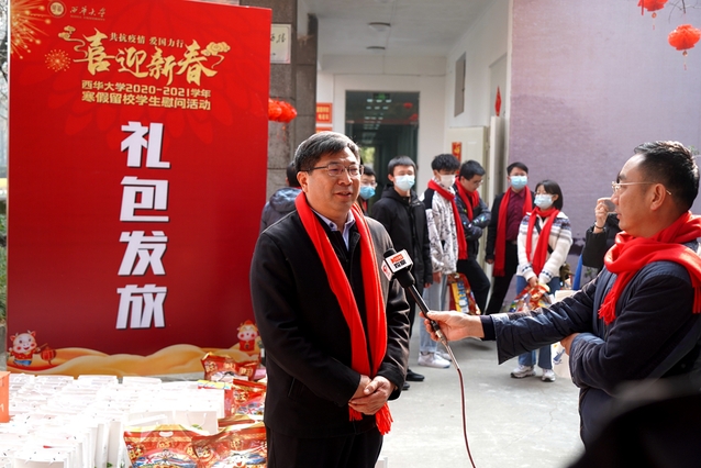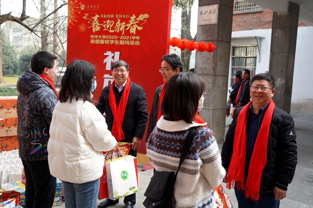 校领导为留校学生发放防疫物资包和新春大礼包