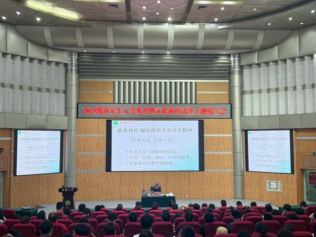 9月18日,秦昌明教授在四教报告厅为2025级全体研究生分批次开展了校情校史教育。他以亲历者视角回溯学校风雨变迁与学科崛起历程,生动诠释“俯首甘为孺子牛”的西华精神。报告中穿插校园建设者的感人故事,如“一砖一瓦中的办学初心”“学科攻坚中的西华韧性”等,引导研究生在历史脉络中读懂“西华温度”,在使命传承中锚定学术坐标。