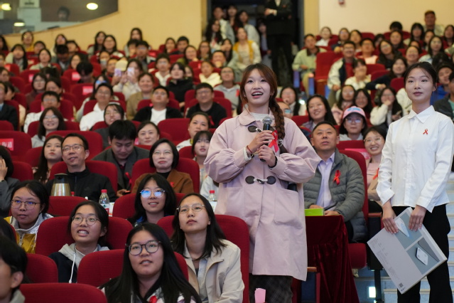 “如果不幸患了艾滋病,长期服用药物会有哪些副作用?”面对学生的困惑,白岩松用“感冒自愈”与“艾滋病必须服药”的生动对比,巧妙阐释了坚持治疗的必要性。他强调“恶性传染病是做乘法,不是做加法”,表示所有恐惧都来源于未知,所有风险都来自不确定性,希望大家通过掌握科学知识消除未知的恐惧,通过负责任的行为减少健康风险的不确定性。现场不仅探讨了“什么是艾滋病”,更深入至“如何看待与艾滋病相关的歧视与恐惧”“如何在保护自己的同时传递温暖与善意”等命题。专家们的真知灼见与幽默坦诚的交流,赢得了阵阵掌声,使“防艾”不再是一个冰冷的医学口号,而升华为一场关于生命教育、责任教育与人格教育的公开课。