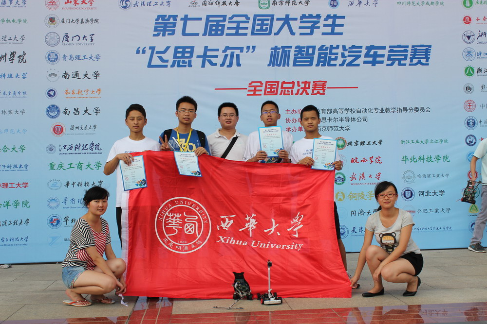 近日,第七届全国大学生“飞思卡尔”杯智能汽车竞赛全国总决赛在南京师范大学落下帷幕,经过两天激烈的比赛,我校进入全国总决赛的两支车队都取得了优异的成绩,由电气信息学院董秀成教授、古世甫老师指导的电磁组“ODC”队和摄像头组“川工第一漂”队都取得了全国二等奖的好成绩。 2012年第七届“飞思卡尔”杯全国大学生智能汽车竞赛总决赛于8月23-25日在南京师范大学举行。此次比赛是经过东北、华北、华东、华南、西部等八个赛区的选拔,最终有来自全国118所高校的195支参赛队伍进入全国总决赛。