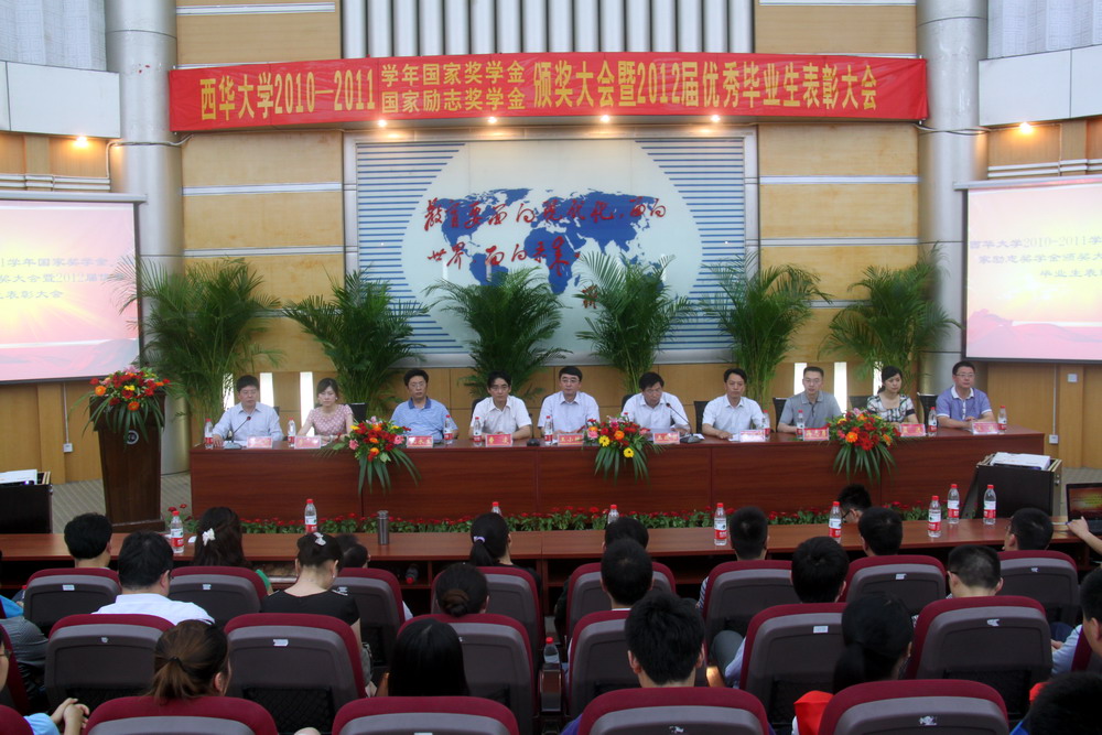 6月12日下午3:00,我校2010-2011学年国家奖学金、国家励志奖学金颁奖大会暨2012届优秀毕业生表彰大会在四教报告厅隆重举行。校党委副书记王小林,副校长王政书,校党委常委、校长办公室主任费凌,党委组织部部长唐润华,招生与就业处处长阮永生,校团委书记蒋志勇,党委办公室副主任蓝进,研究生部副部长李玲,计划财务处副处长江林出席了表彰大会。各学院分管学生工作书记(副书记),学生工作办公室主任以及各学院受表彰学生及学生代表参加了表彰大会。表彰大会由学生工作部部长徐元彬主持。 王小林副书记代表学校党委、行政向获奖同学表示热烈的祝贺,对各位教职员工的辛勤付出表示衷心感谢。他指出,近年来,学校办学水平不断提高、办学实力持续增强、各项事业快速发展,形成了目标明确、措施有力、人心齐聚的良好发展局面。学校的改革离不开广大学生的理解与支持,学校的壮大离不开广大学生的付出与参与,学校的发展更将为广大学生的发展创造更好的空间和平台。他希望获奖同学珍惜荣誉,以此为新的起点,勤奋学习,谦虚谨慎,把个人的命运与祖国的命运紧密结合起来,时刻心系民族复兴、心系国家发展、心系人民福祉,在报效祖国、服务人民中实现自己的人生价值;希望广大同学以获奖同学为榜样,珍惜宝贵的学习机会,勤于学习、善于创造、甘于奉献,掌握扎实本领,全面提高自身素质,在建设创新型国家中勇挑重担;希望2012届毕业生心怀感恩,情系母校,脚踏实地,笃行有为,在回报社会中成就一番事业,为母校增光,为西华添彩! 副校长王政书宣读了《教育部关于2010-2011学年度国家奖学金获奖者的公告》、《bv伟德国际体育官方网站2010-2011学年度国家励志奖学金获奖学生名单》、《四川省教育厅关于公布2012届四川省普通高等学校优秀大学毕业生评选结果的通知》和《bv伟德国际体育官方网站关于表彰2012届校级优秀毕业生的决定》。 表彰会上,举行了各类奖项的颁奖仪式。所有获奖学生身披绶带领奖,会场气氛隆重而热烈。国家奖学金获得者人文学院陈蓓蕾、省级优秀毕业生材料科学与工程学院周超作为获奖代表作了发言。 据悉,今年我校共有74名学生获得2010—2011学年国家奖学金,1182名学生获得2010—2011学年国家励志奖学金,各类优秀毕业生590人,其中省级优秀毕业生99人,校级优秀毕业生491人。