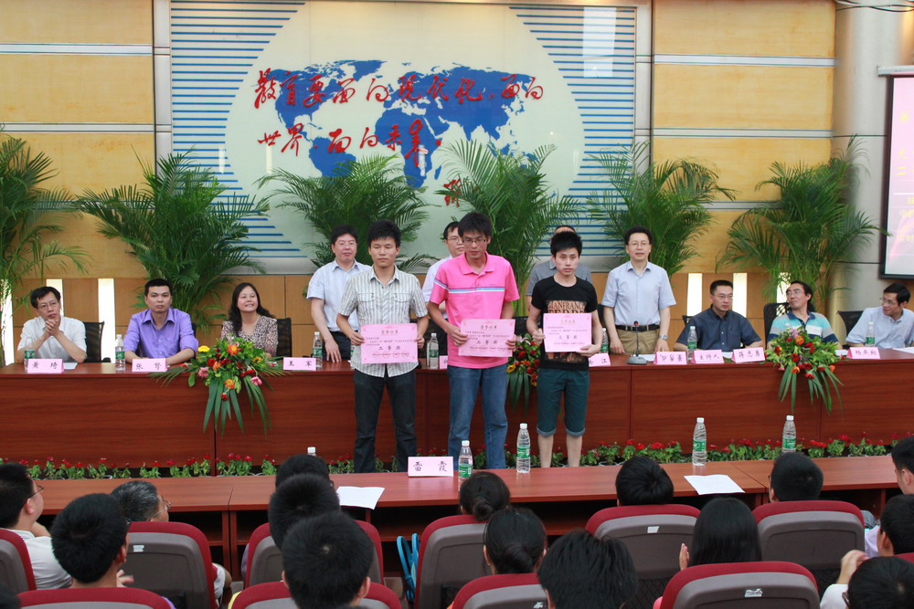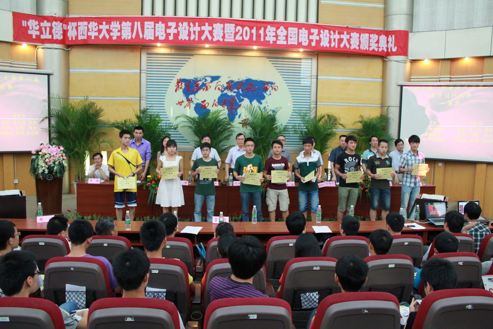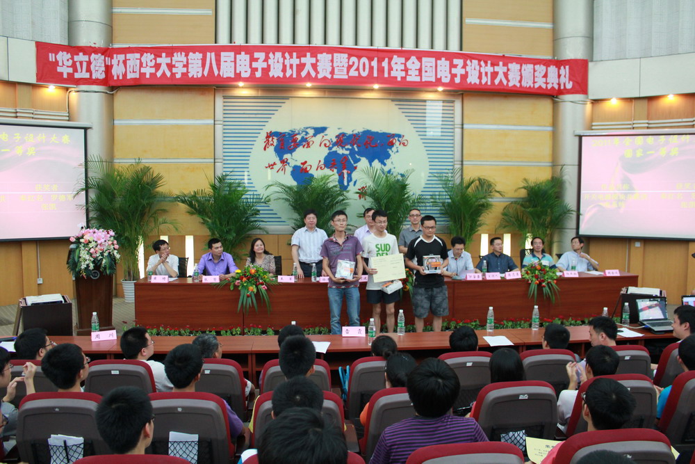 6月14日下午4:00,我校在四教报告厅隆重举行第八届“华立德杯”大学生电子设计竞赛暨2011年全国大学生电子设计竞赛颁奖典礼。华立德科技有限公司总经理徐江、副总经理张弩,我校副校长何建平,学生工作部部长徐元彬,校团委书记蒋志勇,应用技术学院院长杨燕翔,教务处副处长黄琦,电气信息学院党委书记董秀成、院长王军、学院党委副书记周川、副院长魏金成、雷霞,电气信息学院电子设计竞赛指导老师和各学院获奖学生代表等参加颁奖典礼。大会由董秀成主持。 大会首先以PPT的形式展示了我校学生参与2011年大学生电子设计竞赛和2012年bv伟德国际体育官方网站第八届大学生电子设计竞赛的参赛历程。电气信息学院副院长魏金成介绍了全国大学生电子设计竞赛和“挑战杯”大学生系列科技学术竞赛的历史以及我校学生参加历次大赛的获奖情况。电气信息学院院长王军向各位获奖同学致辞,希望更多的西华学子加入到大学生课外科技学术大赛中来,不断提升自身科技创新能力。 之后,华立德科技有限公司副总经理张弩宣读了《bv伟德国际体育官方网站第八届“华立德”杯电子设计竞赛表彰决定》;电气信息学院党委副书记周川宣读了2011年全国大学生电子设计竞赛和第十一届“挑战杯”四川省大学生课外学术科技竞赛获奖名单。 随后,大会举行了隆重的颁奖仪式。与会领导和嘉宾分别为在bv伟德国际体育官方网站第八届华立德杯电子设计竞赛、2011年全国大学生电子设计竞赛、2011年“挑战杯”四川省大学生系列科技学术竞赛中获奖的同学颁奖。 颁奖仪式结束后,华立德公司总经理徐江先生代表公司致辞。他对bv伟德国际体育官方网站的人才培养,尤其是大学生创新实践能力的培养表示肯定,并表示今后还会加大与学校在人才培养方面的合作力度,为创造学生、学校和企业三赢的良好局面而努力。电气信息学院教师代表曹林,国家大学生电子设计竞赛一等奖获得者、电气信息学院2008级信息工程专业的张凯同学分别作了发言。 最后,副校长何建平致辞。他感谢华立德科技有限公司对我校人才培养所提供的帮助,并对同学们提出了三点希望:第一,同学们要尽快转变分数至上的观念,把自身的发展与国家、人民和企业的要求结合起来,注重对自身的实践、创新和可持续发展能力的培养;第二,要尽早接触社会、进入企业,尽快完成从学生向职业人的转变,注重自身专业与非专业能力的培养;第三,希望各学院积极承办高水平的大学生科技学术大赛,提升大赛的档次和影响力,希望更多的同学加入到科技创新中来。 大会在热烈的气氛中圆满结束。会后,与会嘉宾与获奖同学在明德广场合影留念。