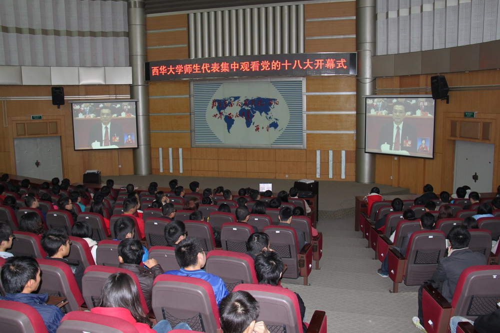 师生在四教报告厅集中收看十八大开幕式