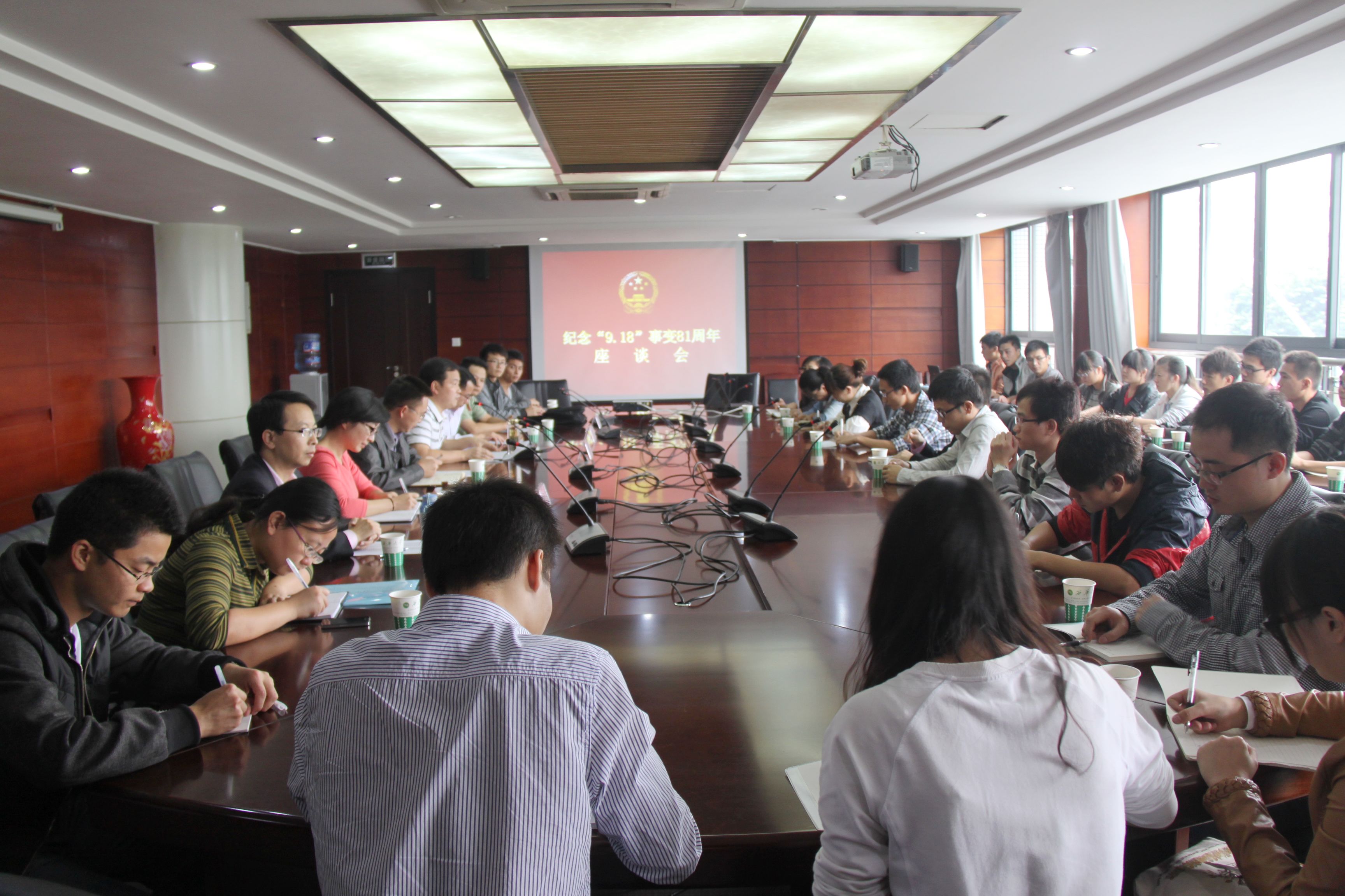 座谈会上,郑小明、封德平、徐宁等与会老师与同学们共同回顾了“9.18”事变的历史过程,表达了对日本军国主义的强烈谴责,并告诫同学们要牢记历史,勿忘国耻,明确使命,珍惜这来之不易的和平环境和战略发展机遇期,进一步坚定在党的领导下,将满腔的爱国热情转化为努力学习科学文化知识、做好本职工作、努力建设家园的动力。