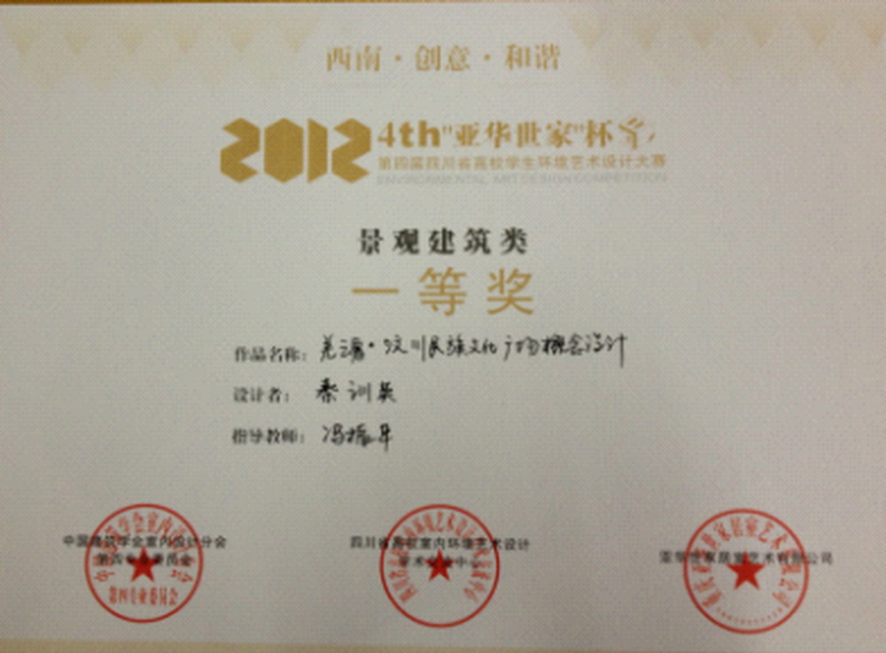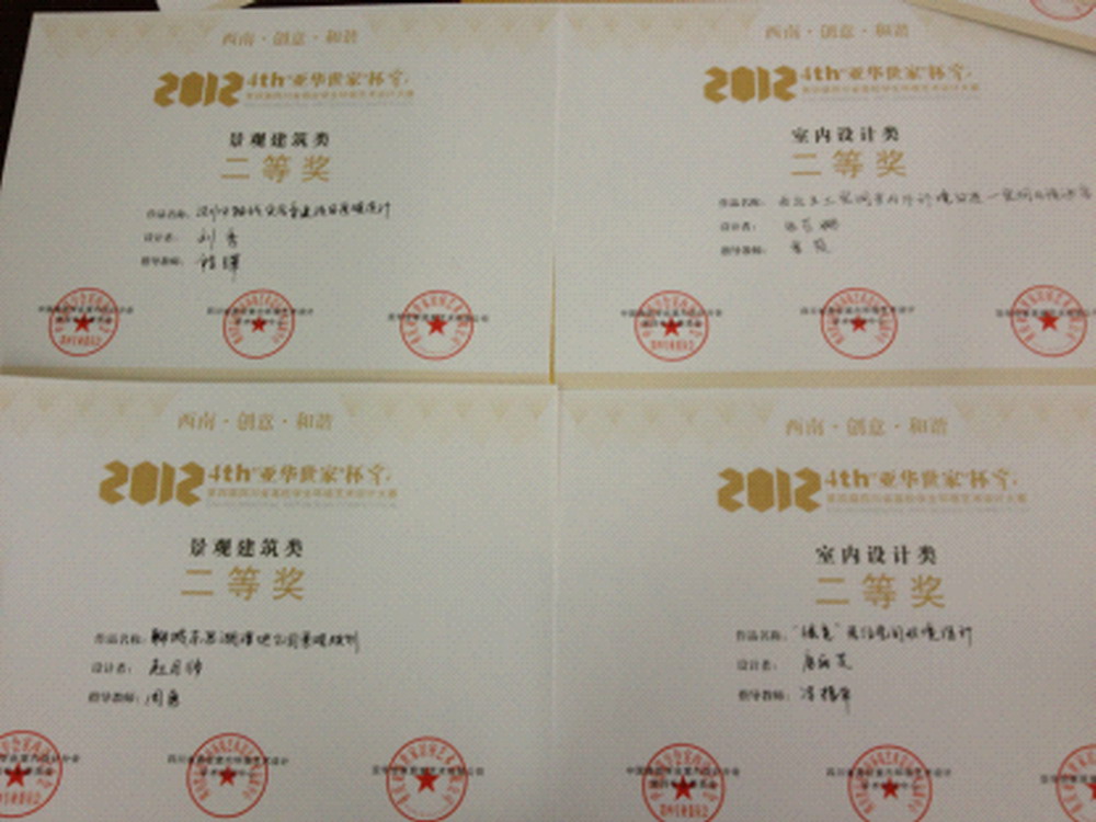 11月1日下午,第四届“亚华世家杯”四川省高校学生环境艺术设计大赛颁奖典礼在四川音乐学院举行。我校艺术学院副院长屈立丰、艺术设计系主任黄静等参加了颁奖典礼。在此次竞赛中,我校师生积极参加本次比赛,艺术学院获“优秀团体奖”;冯振平、周勇、冯志、舒悦、曾筱、徐澜婷、程辉7位老师获“优秀指导教师”奖;秦训英同学作品《羌魂·汶川民族文化广场概念设计》获一等奖;刘秀同学作品《汶川中轴线灾后重建项目景观设计》、唐莉芝同学作品《绿意居住空间设计》、张学鹏同学作品《西北生土窑洞室内外环境改造设计——窑洞风情酒店》、赵月帅同学作品《聊城东昌湖湿地公园景观规划》获二等奖;罗飞、李维、韩霜、杨如如、李辰5位同学获三等奖;黄梦竹同学作品获软装陈设设计三等奖;谢嘉星、倪广杰作品获最佳创意奖;唐艳萍、王泽洋、干航伟作品获最佳表现奖;唐勇、蒋胜和、王红菊等16位同学获入围奖。 四川省高校学生环境艺术设计大赛由四川省教育厅、中国建筑学会室内设计分会、四川省高校环境艺术设计交流中心、川音美术艺术学院等单位联合主办。参赛作品包括室内设计和环境景观设计两大类别。该活动的主要目的是为了推动西南地区环境艺术设计专业的迅速发展,增强院校间的相互联系,提高高校环境艺术设计专业教育水平,为西南地区的建设发展输送更多的优秀人才。