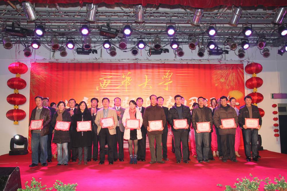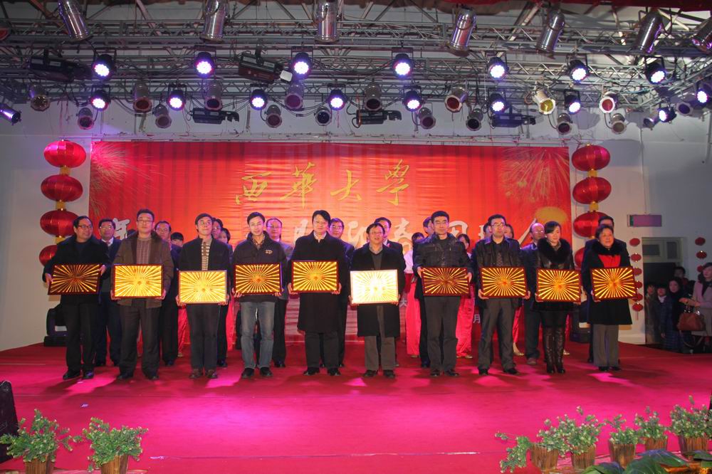 “沐兔年瑞气,师生合力描绘西华发展美景;迎龙岁祥光,校院齐心谱写教育改革新篇。”满载着2011年的累累硕果,怀着对2012年的美好期盼,1月5日晚7:00,我校迎来了一年一度的年终表彰暨迎春团拜会。校学生活动中心张灯结彩,欢声笑语,暖意浓浓,到处洋溢着和谐喜气的气氛,全体校领导、校级干部,副处级以上中层领导干部、学院分工会主席,离退休校领导,四川省和成都市党代表、人大代表、政协委员,省文史馆馆员,民主党派主要负责人、侨联、台谊会主要负责人及教师代表、职工代表和西华社区代表等共320余人在这里欢聚一堂,载歌载舞,共享2011胜果,展望美好未来。 晚会前,校党委书记张小南致辞。张书记代表学校党委、行政向全校师生员工致以节日的问候与祝福,向一年来为学校改革发展而辛勤工作的教职员工表示感谢。张书记在致辞中满怀激情地回顾了2011年学校取得的成就。他指出,2011年是学校“十二五”规划的开局之年,是学校在沉淀50年办学历史基础之上继往开来、奋发进取、喜获丰收的一年。一年来,学校以科学发展观为统领,认真学习贯彻国家和四川省《中长期教育改革和发展规划纲要》,深入贯彻落实第一次党代会精神,积极实施“三步走”发展战略,加强调查研究,强化规范管理,狠抓任务落实,坚持以提高人才培养质量为核心,以学科建设为龙头,以师资队伍建设为关键,以党的建设为保障,以对外合作交流为平台,改革创新,奋发进取,各项事业取得长足发展。 张书记强调,2012年,是推进实施“十二五”规划的第二年,也是推动学校迈向发展新阶段的关键一年,要继续以科学发展观为统领,以学习贯彻十七届六中全会、省委九届九次全会精神为契机,以迎接党的十八大召开为动力,立足校情,进一步解放思想、脚踏实地,坚持群众路线,加强调查研究;注重内涵发展,教学上质量,科研出精品,学科建特色,管理服务出效益;依法治校,规范管理,以人事分配改革工作为契机,推进管理重心下移,权力下放,充分调动发挥二级学院和广大教职工的积极性和主动性;注重外引内培,加强人才队伍建设,尤其要把对青年人才的培养提升到学校发展的战略高度上来;强化机遇意识,千方百计争取外部资源,积极搭建学科建设平台,为学校发展创造良好的外部和内部环境;坚持以人为本,在发展的同时高度重视教职工的切身利益,充分体现发展为了教职工,发展依靠教职工;继续发扬“知难而进、自强不息”的西华精神,用更加坚定的信念攻坚克难,用更加辉煌的成绩书写2012年学校事业科学发展的新篇章! 团拜会在视频短片《兔年回望》播放中拉开了帷幕。电视片回顾了学校201年的大事和取得的主要成绩。晚会节目精彩纷呈。整台晚会共分为回首、感动和展望三个篇章。晚会节目内容丰富、形式多样,既有文艺节目的表演,也有互动游戏的参与,充分展示了我校在改革发展中积极向上、奋发前行的精神风貌。辛勤工作了一年的老师们纷纷登台献艺,用丰富多彩的文艺表演来抒发他们心中的喜悦和热情。幽默风趣的三句半《特色学院齐拜年》、激情四射的舞蹈《走在山水间》(画外音)、热情洋溢的诗朗诵《与西华相约》和富有地方特色风格的四川清音《共建美好新四川》等一个个精彩的表演,以其独特的表达方式展示了过去一年学校取得的瞩目成就以及对来年的美好期盼与祝福,唱响了一曲曲振奋人心的新春之歌,把整个晚会推向一个又一个高潮,现场掌声不断,笑语连连。喜迎新春幸运抽奖环节更是充满悬念和期待,在各位老师的热情欢呼声中,由张书记和孙校长为8位幸运观众抽奖,并亲自为他们颁奖。 晚会现场,学校举行了隆重的颁奖仪式。校长孙卫国宣读了2011年度学校先进集体奖、突出贡献单项奖获奖名单,校党委书记张小南宣读了2011年度学校优秀干部名单。全体校领导为获奖单位和个人颁了奖,呈现出一片尊师重教的浓浓氛围。 今年的团拜会,“微博送祝福”现场互动成了一道靓丽独特的风景线,学生们通过bv伟德国际体育官方网站官方微博、西华青年网和bv伟德国际体育官方网站微博联盟向老师们发来祝福,表达了对老师们培育之恩;教师们通过微博表达了对学校发展的美好祝愿。 伴着优美的旋律和美妙的歌声,各位参会老师相互致意,互赠祝福,持续近两个小时的团拜会气氛热烈,洋溢着一派欢乐祥和的景象。 最后,我校2011年终表彰暨2012迎春团拜会在歌伴舞《田野的春天》的精彩表演中圆满结束。