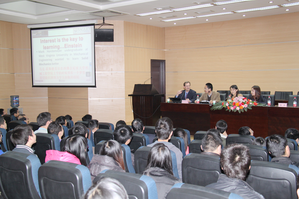 3月26日下午3:00,美国密西西比州立大学机械工程系教授、先进车辆系统中心计算固体力学首席教授Mark F. Horstemeyer来到我校,在行政楼一楼报告厅作了题为“Interest is the key to learning”的学术报告。报告会由副校长钱进主持,机械工程与自动化学院、交通与汽车工程学院、材料科学与工程学院教师及部分研究生参加了报告会。 ![]() |