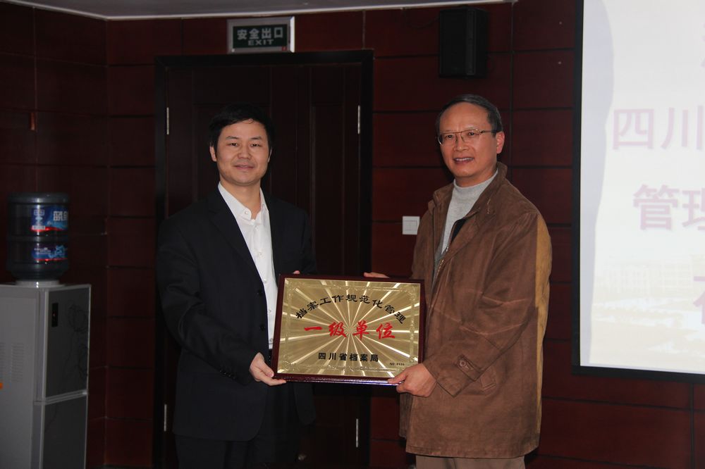 11月21日下午,由四川省档案局副局长周书生、四川省档案局经济科技档案业务指导处副处长王晓瑜、四川省教育厅办公室副主任赵晓玲、四川省教育厅办公室副处级调研员廖淑娟、四川大学档案馆馆长党跃武组成的四川省档案工作规范化管理定级考评专家组一行5人来到我校,对我校档案工作规范化管理省一级标准资格进行考评认定。通过评审,我校档案工作规范化管理达到四川省一级标准。周书生副局长为我校颁发证书并授牌,孙卫国校长代表学校接受证书和牌匾。 认定会在行政楼212会议室召开,校长孙卫国、正厅级调研员蔡汉军,校档案馆负责人、各部门分管档案工作领导及专兼职档案人员参加了会议。会议由四川省档案局经济科技档案业务指导处副处长王晓瑜主持。 首先,我校正厅级调研员蔡汉军从组织管理、基础设施设备、基础业务建设、开发利用四个方面,对我校档案工作基本情况向专家组成员进行了汇报。bv伟德国际体育官方网站档案馆馆长费凌汇报了档案工作规范化管理省一级标准自查得分情况。 专家组通过对档案综合库房、陈列室、阅览室、办公室进行实地察看、随机抽样、提问等形式,对我校档案工作在组织管理、基础设施、业务建设、开发利用四个方面进行了检查考评。考评专家一致认为,我校档案管理工作在组织管理上规范有序,档案工作逐步走向规范化、制度化;在设施设备上,现代化设备齐全,档案文件保护措施有效;在基础业务建设上,各项规章制度健全,档案管理符合国家和行业标准;在开发利用上,成效明显,为学校的发展提供了有力支持,达到四川省高校档案工作规范化管理省一级标准。 党跃武代表评定专家组对评分情况进行了详细说明,廖淑娟宣读了《关于bv伟德国际体育官方网站档案工作规范化管理省一级标准的认定意见》,王晓瑜宣读了档案工作规范化管理等级认定的通知。赵晓玲对学校通过省一级标准认定表示祝贺,并对我校档案工作的不足提出了改进建议和意见。周书生副局长充分肯定了我校档案工作规范化管理建设成就,希望学校以此为起点,以评促改,促进档案工作发展。 孙校长代表学校党委和行政对专家组的辛勤工作表示感谢。他表示,今后学校将进一步贯彻落实《高等学校档案管理办法》、《四川省<高等学校档案管理办法>实施细则》等文件精神,不断完善档案管理的各个环节,努力提高科学管理水平,为我校各项事业的发展提供强有力的支持,为广大师生员工和社会各界提供更优质的档案信息服务。 |