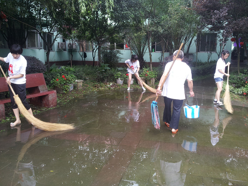 雨后志愿者们在清扫社区 |