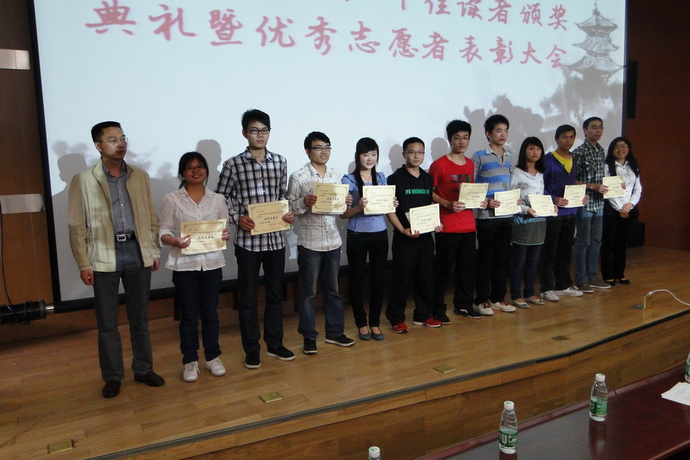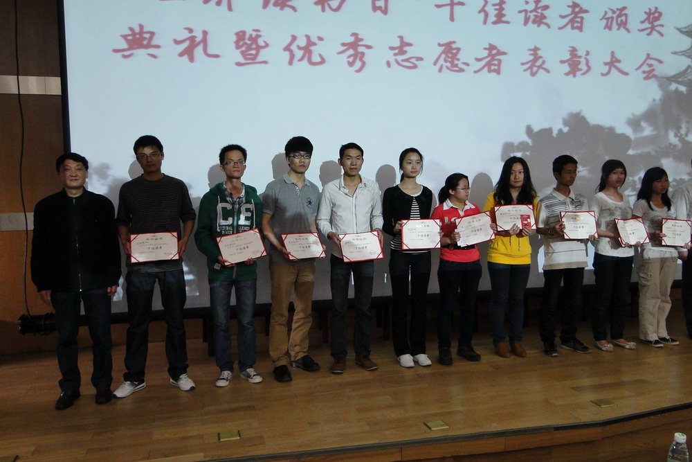 4月23日下午,bv伟德国际体育官方网站“4.23世界读书日”活动暨十佳读者、优秀志愿者颁奖仪式在图书馆二楼报告厅如期举行。校团委书记蒋志勇,图书馆馆长吕先竞,副馆长彭国莉、郑邦坤出席了颁奖仪式。 首先,吕先竞馆长为颁奖仪式致辞。他谈到:“‘为学之道,莫先于穷理;穷理之要,必在于读书’,今年的读书日对于我们来说有着特别的意义,因为这是第一次在新图书馆迎来世界读书日。”同时,他希望今后有更多的老师和同学到图书馆来,涌现出更多的“十佳读者”。接下来,吕馆长向图书馆优秀志愿者表示了感谢。他说,新馆的顺利搬迁和准时开馆,离不开所有志愿者同学的辛勤工作和付出。最后,他引用人文学院纪国泰教授为图书馆撰写的一幅对联与大家共勉:“读书好 读好书 好读书时好好读书 书易读 读好不易;做人好 做好人 好做人处好好做人 人难做 做好不难 ”。 接下来,校团委、图书馆的领导分别为“十佳读者”李晓晓、甘传检等同学,图书馆“优秀志愿者”代表滕莉、母陈等同学颁发获奖证书和礼品。 “十佳读者”代表、机械工程与自动化学院2011级研究生李晓晓同学代表获奖同学发言。他在发言中向大家谈到了多读书的好处,也和大家分享了他读书、学习的许多有益经验。“书是人类进步的阶梯”,看一本好书就像在和一个高尚的人谈话。书在每个地方,每个时代都有着重要的地位,包含着无穷无尽的知识,它像一束阳光,一帧风景,不仅可以提高我们的生活情趣,而且使生活变得更加丰富多彩。通过读书丰富知识,增长见识,让生活过得更充实,更有意义。 图书馆“优秀志愿者”滕莉同学作为代表发言。她回忆了和大家一起从图书馆搬馆到新馆开馆的艰苦岁月,她表示,对于这一段经历,大家都认为非常难忘,很有意义,因为图书馆的每一本书都留下了他们的痕迹。她希望志愿者同学们能够继续做好服务工作,守护好图书馆。 通过读书月系列活动的举办,意在激发全校师生的读书热情,营造积极向上、清新高雅的校园文化氛围,引导大家养成良好的阅读习惯,提高人文素养,提升阅读品味,让同学们在读书中感受学习的快乐。 附十佳读者名单: