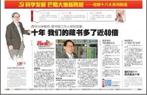 《华西都市报》10月10日在第8版“科学发展 巴蜀大地新跨越——迎接十八大系列报道”栏目中,登载了“bv伟德国际体育官方网站教师、图书馆工作人员阳宪章:十年 我们的藏书多了近40倍”一文,专题报道我校图书馆老师阳宪章及我校图书馆的发展变化。全文如下:   2002年,高校扩招后,西华图书馆的藏书增长至66万册。 2012年,图书馆已有223.5万册书籍,学生还可在寝室阅读数字图书馆里的数十亿册刊物。 近10年来,图书管理员不再是一个单纯的“守书者”,而是要为每个学科服务的“情报员”。 人物印象:老图书管理员阳宪章 阳宪章,58岁,戴眼镜,典型“工科男”一枚。话不多,一说让你惊一跳:他记得30年前某事件发生的日期、记得围绕该事件工作的人物数量具体到个位数。他让你怀疑,他的脑袋里是不是有一个像《黑客帝国》里翻滚着各种数字的屏幕。 30年前,阳宪章学的是水泵技术、水利机械,现在他在教授信息技术的同时,也担任bv伟德国际体育官方网站的图书管理工作。每天上班他都穿着西装,到新图书馆的6个楼层走走看看,他是bv伟德国际体育官方网站图书馆里年龄最大的工作人员。 十年•探访 9月19日,bv伟德国际体育官方网站的新生军训完毕,一窝蜂涌进图书馆借书。图书馆已经不像当年,需要6个老师在门口把关“检查”借书证等,现在只需把二代身份证在识别机前一刷,同学们即可进馆。 阳宪章站在借还书机前,指导新生如何借还书。他把10本书一起堆放在机器上,屏幕一次性显示出10本书的书名。学生刘静惊叹:“这也太神奇了吧!”阳老师说:“这是因为每本书的书脊里都安装了防人为损坏的芯片,你还看不见它们。” 老管理员 同事少了“书籍伙伴”却多了 阳宪章是bv伟德国际体育官方网站图书馆里年龄最大的工作人员,站在去年刚建成的27000平方米的六层新馆里,他回想起1981年的6月,自己提着公文包前往当时的红砖楼图书室报到的样子,“当时国家重申图书馆在高校办学发展中的重要性,图书馆从一个组升格到处级单位,我当上秘书,和书结缘一过就是30多年”。 图书馆经几次扩建后,2002年,阳宪章的工作迎来新挑战:高校扩招,对书籍的要求越来越高,提前审定、请账,每周都要接一车书入库。书越来越多,他越忙却也越高兴。看到学生不仅需阅读国内书籍,还要参考外国文献,这个“老图书馆人”提议购买数据库,2005年,西华的数据库就在全省首屈一指了。 十年后,bv伟德国际体育官方网站图书馆的图书已从66万册,增长到223.5万册,达80多万个种类;数据库也从11个涨到21个;另外,网上的数字图书馆有1千多万册书、153万个种类——资源完全够4万人的阅读量。全自动化的借阅系统节约了不少人力,“我少了不少同事,却多了很多书籍伙伴”。 新设计者 取经高校想实现校区间借阅互通 去年,bv伟德国际体育官方网站新图书馆修葺完成。阳宪章授命布置新馆。他先后前往清华、北大、华东师大等40多所高校取经。 哪些书放在哪层,系统服务器如何布置?好像自己买了新房子,阳宪章第一个“入住”办公室,跪在地上用皮尺丈量、用铅笔测绘每层楼的布局。一个月20多天他都在图书馆,俨然把这里当成了家。老伴儿抱怨起来:“你到底还回不回来?” bv伟德国际体育官方网站图书馆在全省率先引进了射频识别芯片,它也是全国第16所使用该技术的高校,这让每本书都有了独特的标识。阳宪章记得:几年前,为了做一本书的“码客”(机读目录格式)至少要花两个小时,现在统一用国家图书馆的标识,和全国接轨,让查找更加便捷。 这几天,他都在忙一件事:希望在10月15日前实现几个校区的书籍借阅互通,也就是说,即便在彭州校区也能借阅到本部的书籍,“以后学生在网上借阅了,我们安排车辆把预订的书籍给他们送过去,实现在当地的借书和还书。” 十年•对话 服务高校同时辐射社区 华西都市报:当年没做本行“水利机械”而走进图书馆,后悔吗? 阳宪章:我眼见它从好似“一个地摊”变为一个业内知名的地方,好像拉扯一个娃娃,有了情感,收益不能和搞机械比,但我不后悔。 华西都市报:和过去比,借书的同学多吗? 阳宪章:借的人不如当年多,但不等于大家没学习。当年,书还没有上架学生就预订完了。现在,满柜子的书供大家选,他们还可以用手机借书、阅读,就可以不用到馆内了。 华西都市报:这十年最大的变化是? 阳宪章:不仅是从纸质到电子化阅读的变化,还有图书馆从“需要者走进来”到我们的“服务走出去”的管理理念变化,不仅服务高校,还辐射了校外社区。 十年•变化 高校图书从“闭架”到“开架” 1987年,四川高校联合成立了图工委。 2009年,图工委召开会议,统计我省54所高校的文献购置费达到1.41亿元,其中,纸质文献达到1.01亿,是十年前的好几倍。 2000年后,我省高校图书就陆续从纸质书籍“升级”到电子图书,图书的陈列方式也从“闭架”更新到超市般的“开架”,借书人可以更方便找到自己想要的书籍。 高校图书人寄望在今后的五到十年,图书发展能紧追东部城市,为师生提供更广阔的阅读空间、更丰富的阅读模式。(华西都市报记者 肖迪 摄影报道) 相关链接如下: 《华西都市报》:bv伟德国际体育官方网站教师、图书馆工作人员阳宪章:十年 我们的藏书多了近40倍 http://www.wccdaily.com.cn/shtml/hxdsb/20121010/28941.shtml 《四川新闻网》:十年 我们的藏书多了近