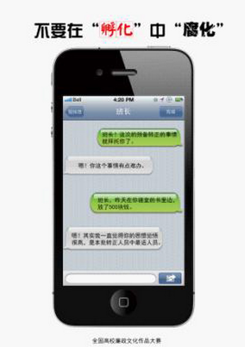 近日,教育部公布了全国高校廉政文化作品大赛评选结果,我校艺术学院工业设计系同学乐文涛的设计作品《孵与腐》在本次比赛中获得艺术设计类三等奖。获奖作品由艺术学院周睿老师组织和指导设计。 本次比赛是为了深入贯彻落实党的十七届六中全会和第20次全国高校党建会、中纪委等六部门《关于加强廉政文化建设的意见》(中纪发〔2009〕27号)以及《教育部关于在大中小学全面开展廉洁教育的意见》(教思政〔2007〕4号)精神,进一步推进高校廉洁教育和廉政文化建设。各地各高校认真组织,广大师生积极参与,创作了一大批优秀作品,充分展示了高校廉洁教育和廉政文化建设的成果,对营造风清气正的校园环境,引领以崇尚廉洁为价值取向的社会风尚起到了积极作用。 本次大赛共评出表演艺术类作品一等奖11项,二等奖23项,三等奖33项;书画摄影类作品一等奖17项,二等奖45项,三等奖65项;艺术设计类(含大赛Logo设计)一等奖13项,二等奖34项,三等奖43项;网络新媒体类一等奖4项,二等奖11项,三等奖12项;优秀组织奖20个。 教育部官方网站信息: http://www.moe.edu.cn/publicfiles/business/htmlfiles/moe/s6881/201210/142967.html