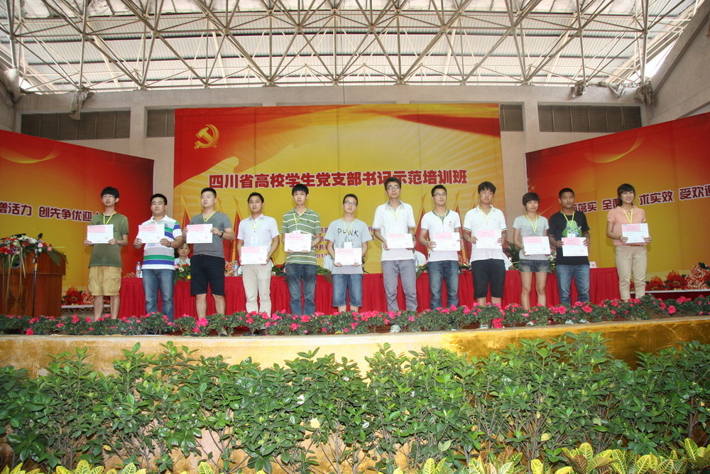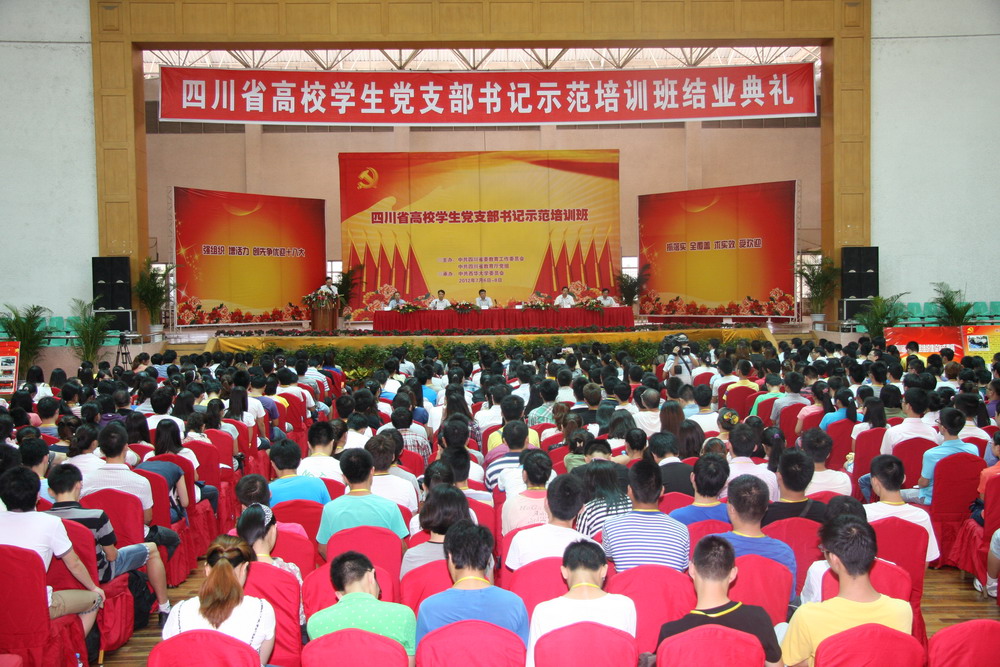 7月8日下午2:00,bv伟德国际体育官方网站体育馆内热情洋溢,四川省高校学生党支部书记示范培训班结业典礼在这里隆重举行。经过为期三天紧张而愉快的培训学习,学员们圆满地完成了各项学习任务,顺利地拿到了结业证书。 省委教育工委、省教育厅组织干部处处长丁念友,省委教育工委、省教育厅组织干部处副处长蔡玉波,bv伟德国际体育官方网站党委副书记王小林,校党委组织部部长唐润华,副部长罗海、邱刚等出席结业典礼。各参训高校的校领导、培训班全体班主任、参训学员等1000余人参加了结业典礼。结业典礼由唐润华主持。 省委教育工委、省教育厅组织干部处处长丁念友指出,本次示范培训班在省委教育工委、省教育厅党组的直接领导下,在各参训高校党委的大力支持下,在同学们的密切配合和辛勤努力下取得了圆满的成功,呈现出五个特点:一是开历史先河,影响深远;二是领导高度重视,大力支持;三是组织管理严密,服务保障周到;四是同学们综合素质高,表现优秀;五是培训内容丰富多彩,培训效果令人满意。同时,他也对学员们提出了希望。他希望同学们坚持学习,充分利用所学知识,发挥聪明才智,学以致用,起好示范引领作用,不断提高党支部的凝聚力、创造力和战斗力。 校党委副书记王小林在讲话中说到,本次示范培训班,是省委教育工委、省教育厅党组为深入推进创先争优和基层组织建设年活动而采取的重要举措。本次培训,上级领导高度重视,广大学员认真参与,进一步增强了做好大学生党建与思想政治工作的紧迫感和责任感。他说,通过三天的培训,同学们的理论水平、政治素养和工作能力等方面都得到了一定的提升。与此同时,大家也接触到了各院校的新朋友,加深了省内高校大学生的联谊和友谊,达到了增长才干、开阔视野和提高理论水平的目的。他提到,在举办此次培训班的同时,也使我校师生特别是大学生党支部书记感受和学习到了各院校大学生党建工作的先进经验,极大地提高了我校推进基层党组织建设的能力。 培训班第10班党支部书记、西南民族大学西南民族研究院博士生班长宋立,培训班第3班党支部书记、西南交大袁崇溟,四川工商职业技术学院林语菡,成都理工大学广播影视学院安君四位学员代表分别作了激情洋溢的发言。他们首先对省委教育工委、省教育厅主办的、bv伟德国际体育官方网站的承办本次培训表示衷心的感谢,并对拥有参与此次培训班学习的机会表示倍感珍惜。他们回顾了三天以来的学习经历,通过三天的学习,不仅更进一步地了解了党的发展和演进,同时,与全省各高校学生党支部书记进行经验交流与分享,也起到了共同学习提高的作用。他们表示,要在今后的党建工作以及学习生活中,充分发挥共产党员的先锋模范带头作用。 结业典礼上,与会领导为各参训学员颁发了结业证书。 据悉,本次示范培训班培训内容、形式多彩多样。7月6日下午,省委党校党史党建教研部马锦燕副教授作了题为“党章的历史演进及启示”专题讲座;7月7日上午,省委党校进修部主任吴少柏作了当前形势的报告;下午,省大学生公推直选党支部书记、省优秀基层党组织书记杨婵蓉与学员们分享了她当村官的成长历程。此外,同学们还观看了红色经典影片,开展了党建知识竞赛。8日上午,在体育馆还举行了学生党支部书记工作论坛,全国优秀共产党员、彭州市宝山村党支部书记、78岁高龄的贾正方应邀为同学们介绍了党支部如何带领宝山村群众走上富裕道路的传奇经历。