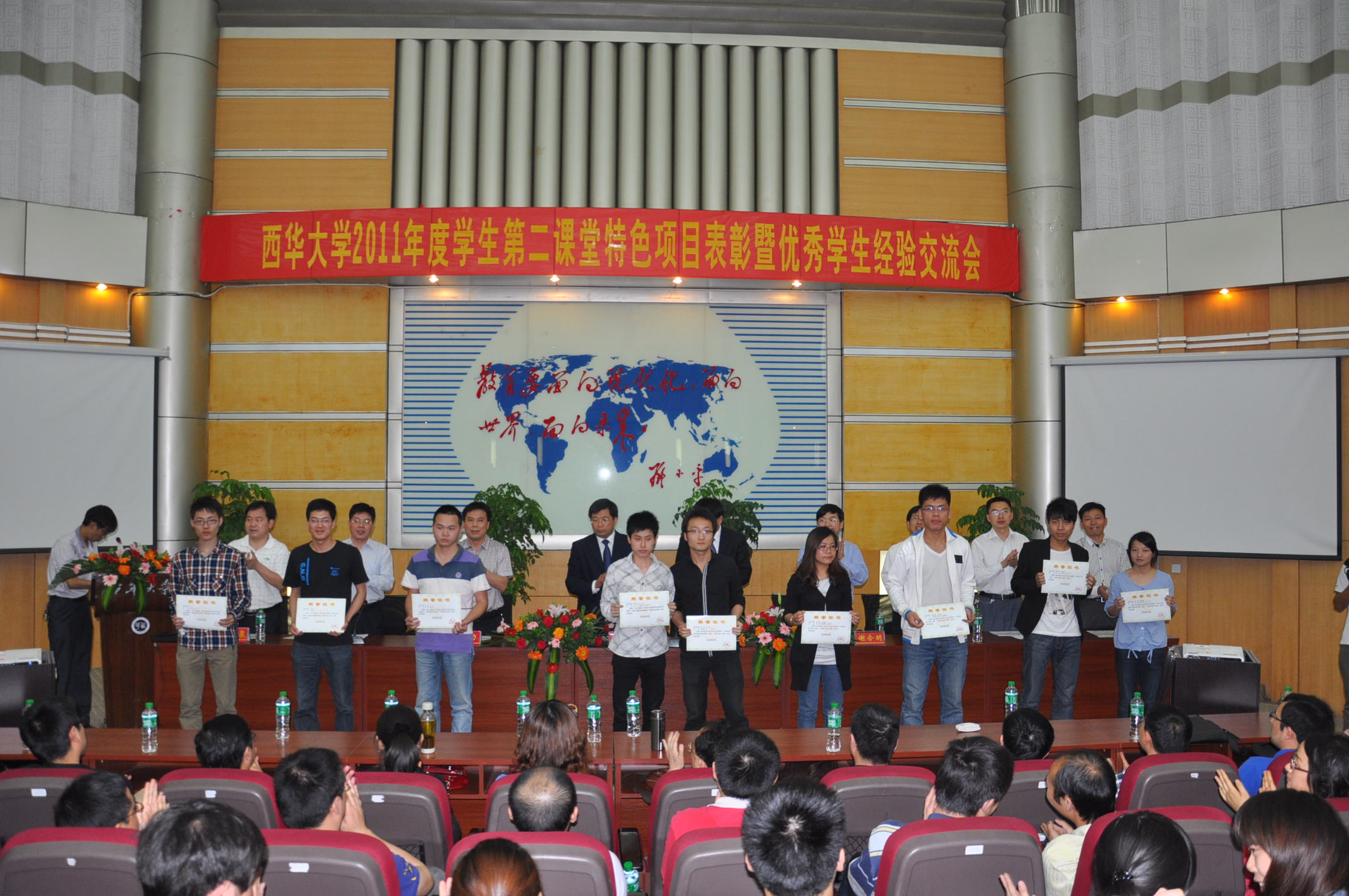 5月2日下午,学校在四教报告厅举行2011年度学生第二课堂特色项目表彰暨优秀学生经验交流会。校党委副书记王小林,副校长王政书,党委宣传部、学生工作部、校团委、教务处、计划财务处主要负责人,以及各学院分管学生工作负责人,获奖学生,各学院学生代表近300人参加了会议。会议由学生工作部部长徐元彬主持。 本次表彰会,学校对2011年度学生第二课活动中的59项特色项目进行了表彰奖励,奖励金额近20万元。会上,王政书副校长宣读了《bv伟德国际体育官方网站关于表彰2011年度“学生第二课堂特色项目”的决定》(西华学字【2012】35号)。与会领导为获奖学生颁了奖。 获奖学生代表、电气信息学院张凯,指导教师代表、交通与汽车工程学院吴涛老师分别作了发言。 王小林副书记对获奖同学表示祝贺,并就进一步抓好第二课堂提出了要求。他指出,第二课堂作为高校科技创新的重要载体,在推进校园文化和校风、学风建设发挥着重要作用,也必将成为同学们培养能力、提升素质的重要舞台。他希望,第一、各部门要积极搭建平台,精心组织和策划第二课堂活动,要把第二课堂放在学校人才培养的高度,认真规划。第二、希望各学院要把第二课堂,特别是其中的创新创业活动和竞赛作为服务党政中心工作、服务青年学生成长成才、促进素质教育的重要结合点和切入点,不断扩大竞赛参与面,使更多的学生得到锻炼、获得启迪、激发潜能、从中受益。第三、希望同学们继续保持崇尚科学、追求真理、勤奋好学、刻苦钻研的精神状态,把创新作为一项崇高的事业,敢于创新、勤于创新,在科技竞赛、创新创业的天地里去开拓新的事业。最后, 王小林副书记用胡锦涛总书记在庆祝清华大学建校100周年大会上的讲话寄语西华学子:“生长在这样一个伟大时代,青年一代应该大有作为,也必将大有作为。让我们紧紧携起手来,志存高远,脚踏实地,共同为我们伟大祖国、伟大民族更加美好的明天努力奋斗!” 近年来,我校学生在科技活动、社会实践、文化艺术、就业创业等方面取得了优异的成绩,涌现出了像电气信息学院凤红名、机械工程与自动化学院张宇涵、经济与贸易学院平美生等一批科技竞赛、科技创新、科技创业的典型人物。据统计,仅2011年,我校学生在参加国家、省、市级重大科技文化和艺术竞赛活动中共获国家级奖48项,省级奖81项。 表彰会结束后,科技创新代表张宇涵,科技创业代表平美生作了经验交流。 对学生第二课堂活动特色项目获奖学生进行隆重表彰,在我校尚属首次,旨在大力表彰先进、树立典型,在学校营造科技创新、科技创业的良好氛围。据悉,学校为进一步加强学风、校风建设,采取了许多重要举措。 学校出台了学生第二课堂活动特色项目奖励办法,专门设立了特色项目奖励基金,明确了学生参加第二课堂活动特色项目奖励的标准及内容。 近日,学校将重新修订《bv伟德国际体育官方网站学生第二课堂活动特色项目奖励办法》。 学生第二课堂活动特色项目奖励办法的出台以及学校的表彰奖励,必将激发更多的西华学子参与到课外活动中去,奉献自己的青春和智慧,必将对校风学风建设起到积极的推动作用。