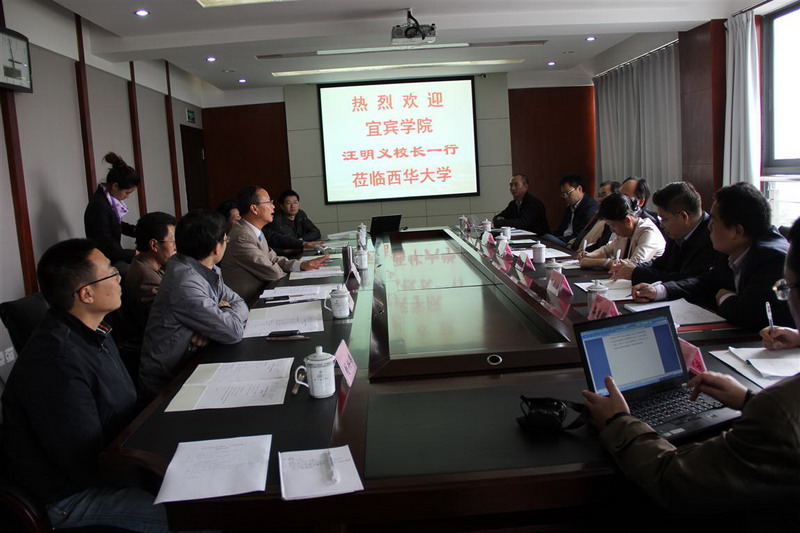 10月25日下午,宜宾学院校长汪明义带领学校正厅级调研员刘维鸿,副校长王藩侯、周广均,校长办公室主任梁凯,人事处处长高曾辉,科研与学科建设处处长田蜀华,基建处主持工作副处长张松梅来我校考察交流,受到校长孙卫国、副校长李劲松的热情欢迎。双方在行政楼412会议室举行了座谈,就绩效工资实施情况、上一轮聘期考核主要经验、新一轮岗位聘任思路和校园建设等情况进行了深入交流。bv伟德国际体育官方网站校长办公室、学科建设办公室、科技处、人事处、基建处等单位负责人参加了此次座谈会。会议由李劲松副校长主持。