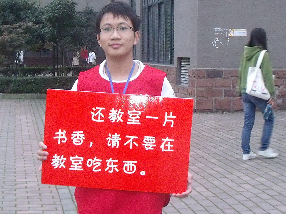 几乎是在一夜之间,一曲《江南style》红遍大江南北,席卷全球。而西华style——“读书”成为今秋bv伟德国际体育官方网站校园里最时尚的词语,它融合了当前最新流行元素的读书时尚,吸引了众多同学的关注,并潜移默化地把这种关注转化为自己的行动。 最潮标语引领校园最高时尚 当“江南Style是骑马 西华Style是读书”,“大学就是来读书的 ,元芳,你怎么看”这两条最潮的标语出现在大学校园时,顿时吸引了所有西华学子的眼球。“原来‘好好学习 天天向上’还可以这样讲的。” 西华Style从良好学习环境开始 与标语同时出现的,是在教学楼门口的志愿者,他们在努力劝导部分因为起床太晚,买了早餐就匆匆奔向教学楼的同学。“亲,教室不是食堂哦”,“二师兄,别吃了,师傅让你回去读书了”,“同学,把东西带到教学楼内吃不礼貌哦”……志愿者们的想法很简单,良好的校风学风,首先要从良好的文明礼仪开始,志愿者们的行动得到了各学院同学的大力支持,各学院不仅通过各种宣传渠道广泛倡议,更主动分片承包了各教学楼的文明劝导工作。 西华Style从文明就餐开始 在四个食堂门口,另一群志愿者们的工作则更为艰巨,他们肩负着劝导同学们文明就餐的重任。因为提前做好了各种准备,实际情况比预想中好很多。从食堂门口开始,志愿者们摆放了“在食堂占座的不是好孩子”,“不要让你的书坐着,让你的同学站着”等宣传展板。在食堂内,也张贴了类似的温馨提示。志愿者们举着不要占座的文明劝导提示牌,轮流在食堂内游走。如果发现有同学正在占座,他们就会上前劝导,或者举着提示牌站在占座同学面前。如果发现无人认领的占座书或者包,志愿者们就会贴上“占座罚单”。 西华Style也可以骑马的 经过同学们的精心准备,作为对全校同学理解与支持的答谢,也再一次吸引同学们关注“校风学风”建设,志愿者们精心组织准备,在开展文明劝导的基础上,加班加点排练出了“西华Style”的骑马舞,并在二食堂和三食堂同步上演。10月25日中午12点整,二食堂门外已经围满了人,一群“鸟叔”打扮的男生和一群青春活泼的女生,向全校同学展示了他们加班加点编排的“西华Style”。 作为一项长期的工作,校风学风建设将继续深入推进,并联合各学院加强对“青春领航员”、“西华好青年”等优秀个人和群体的打造。同时,将继续通过系列的文明劝导活动让每一位同学都参与到校风学风建设中;继续通过大家喜闻乐见的易班、微博等平台,把“西华Style”一直流行下去。
