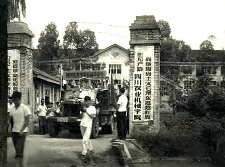 校园在岁月的年轮中一圈圈扩展,校门也在时间的流淌中一次次延伸。历经三次变迁的校门是校园发展的一个缩影。六、七十年代的校门在如今楠苑假山处;1、2教学楼之间曾经是“农机时代”的双柱头校门;求是路口延伸30米处是“川工时代”独特的“根号”型校门。